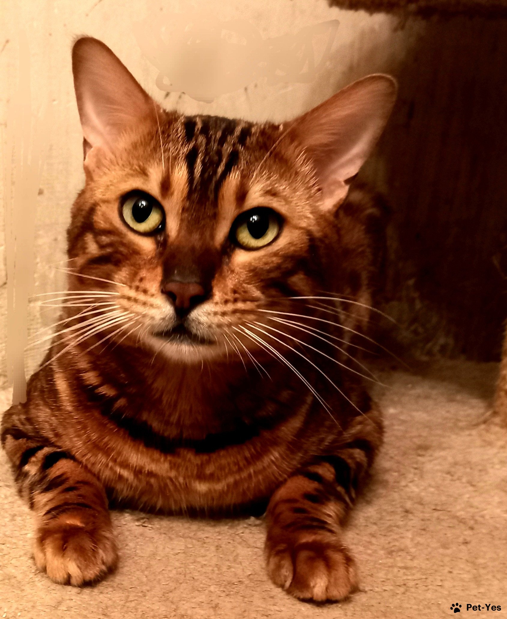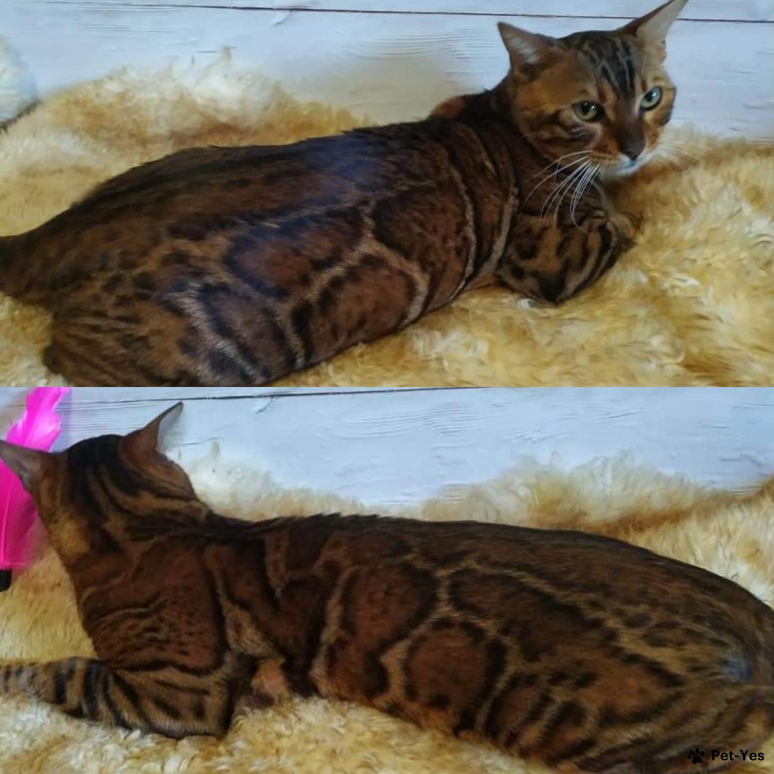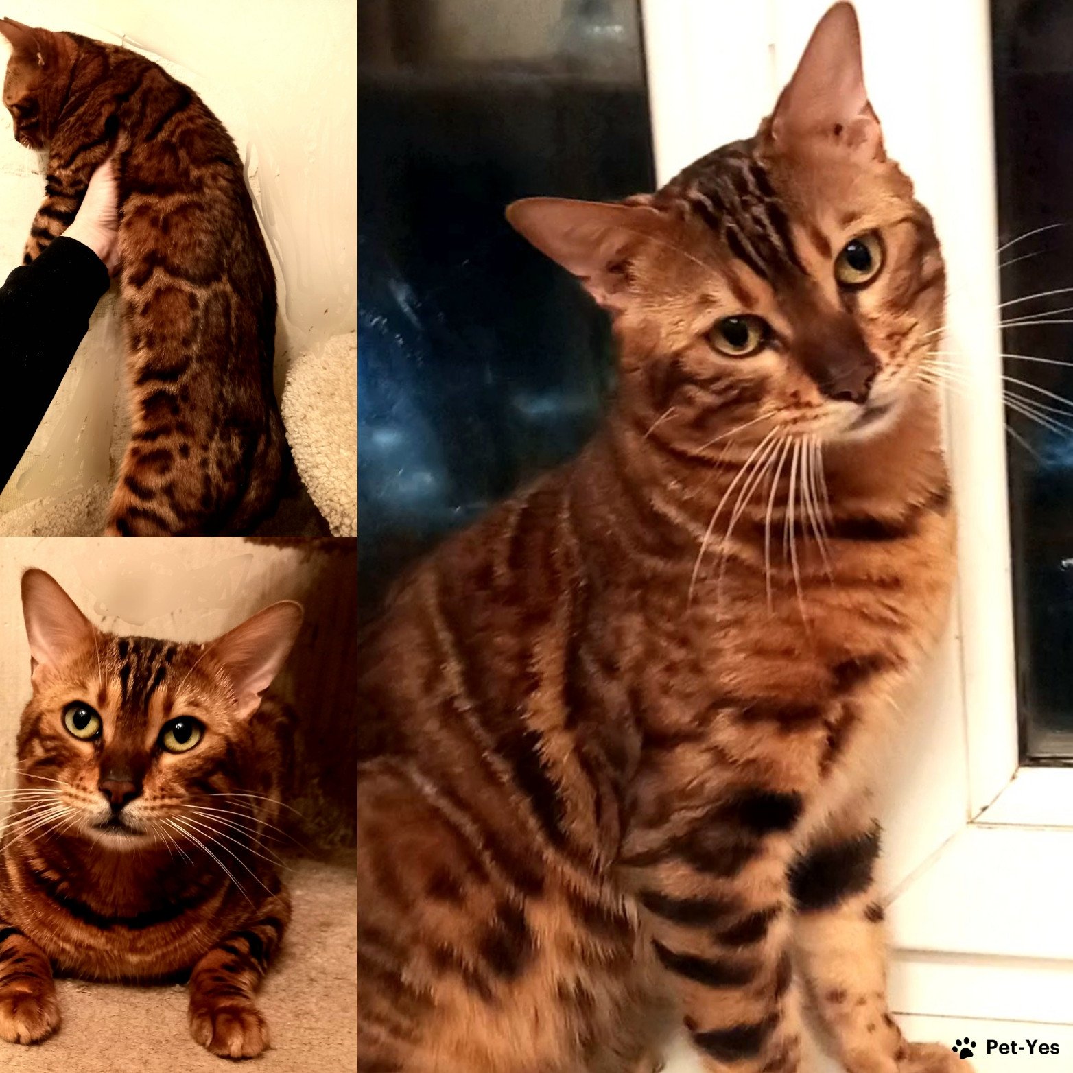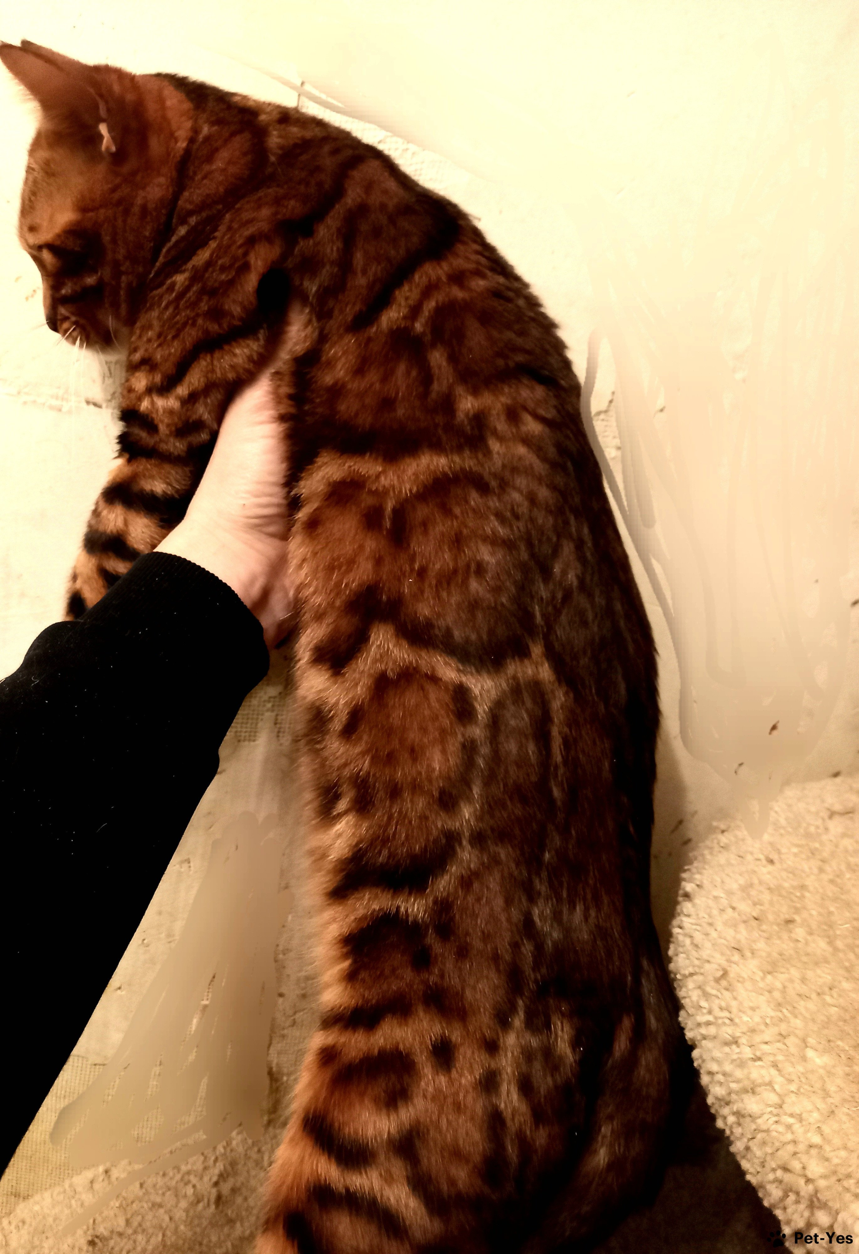 Бенгальский кот Симба, был оставлен в питомнике для нескольких вязок. В настоящее время выведен из разведения, кастрирован, привит, с документами. Котик ласковый, любит гладиться, обожает играть с махалочкой, с детьми общается прекрасно, крупный по размеру.