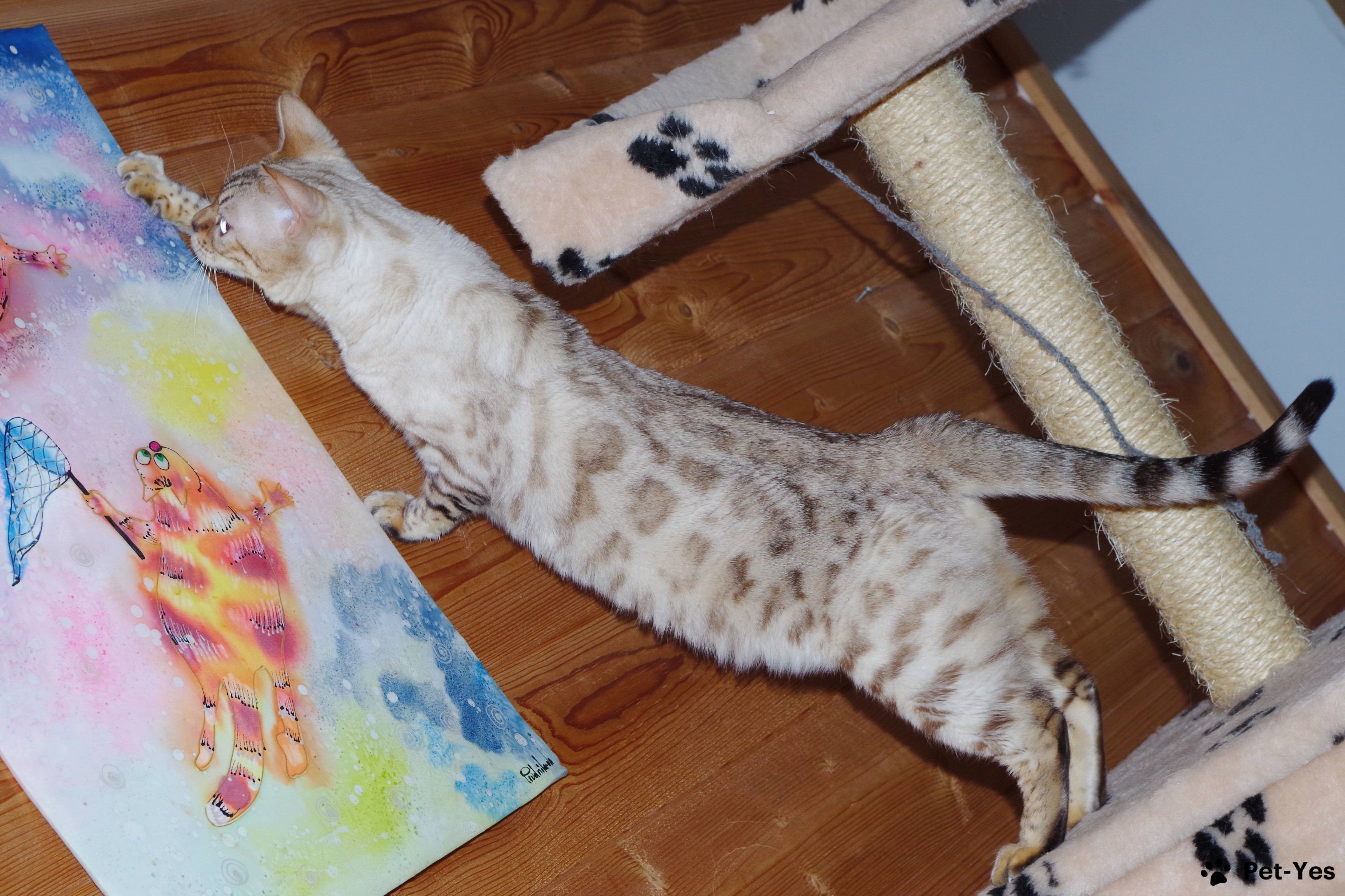 Хорошо ладит с другими кошками. Окрас Снежный минкс, с голубыми глазами.