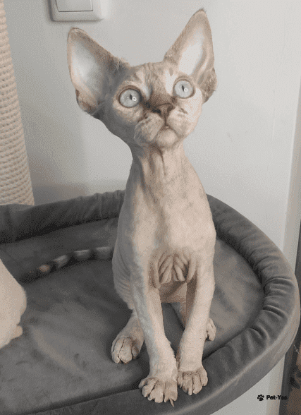 Девочка, скоро 4 месяца, миниатюрная, будет как мама (2,6кг), останется раздетая, с голубыми глазами. По характеру очень нежная, общительная, нуждается в человеческе. Уже готова к переезду, сделаны все прививки, есть документы WCF.