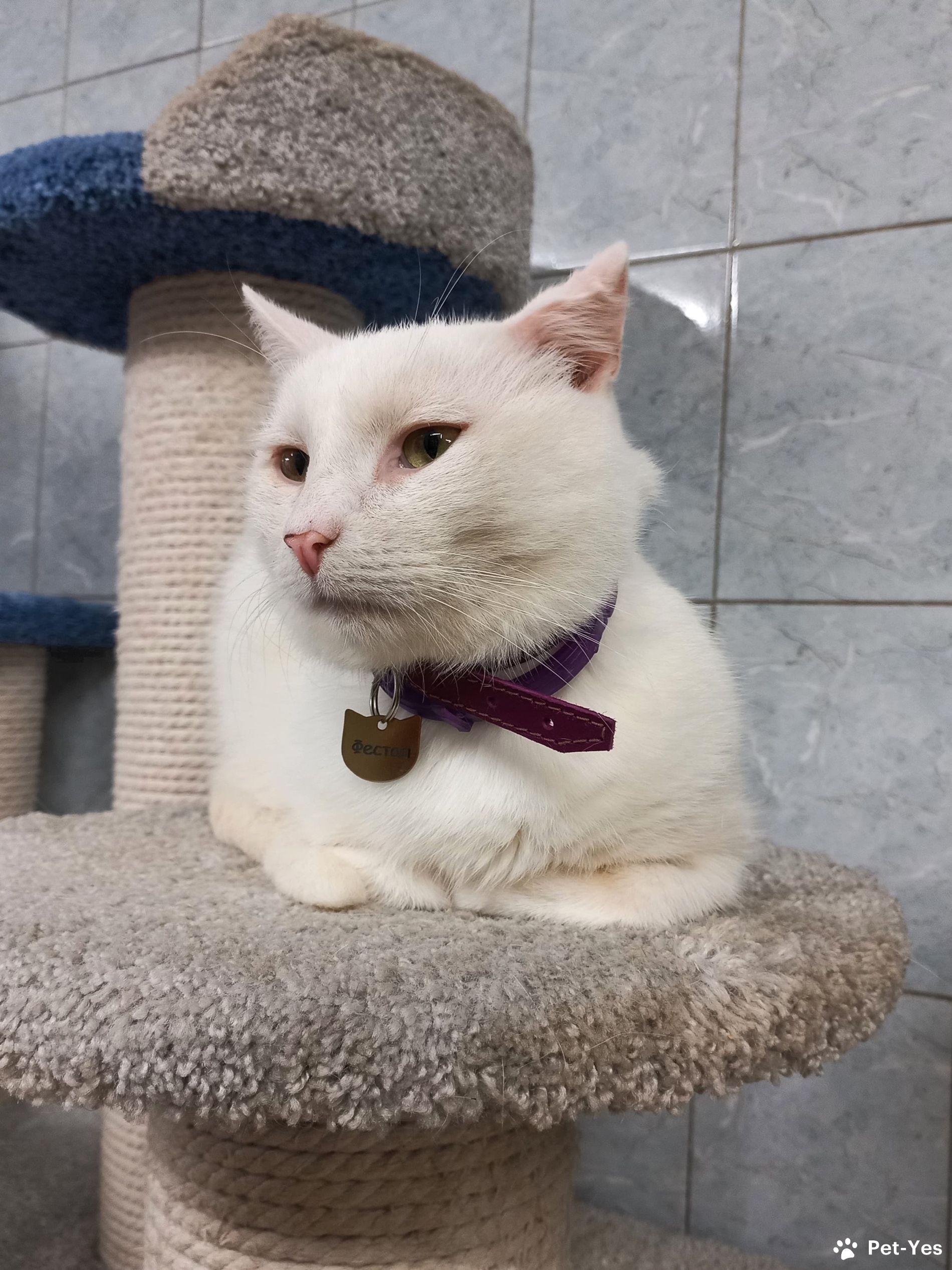 ФЕСТАЛ кот с ул.Руставели 05.07.2025 Чип 643099002545518 Белый, гладкошерстный. Метис. Дата рождения: июль 2020 Кастрирован Вакцинирован Ласковый, спокойный Номер по журналу 181/2025 После смерти хозяина кота выгнали на улицу. Соседи принесли в приют.