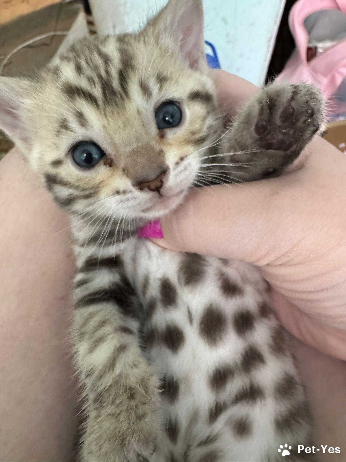 Премиальный бенгальский котенок ищет заботливых Хозяев. Представляем очаровательного малыша породы бенгал — настоящего маленького хищника с характером! Характеристики: • Пол: девочка. • Возраст: 2 месяца. • Окрас: Серый Линкс с голубыми глазами. • Характер у нее: активный, любознательный, очень умная. Особенности: • Приучена к лотку. • Кушает качественный корм Royal Canin для котят. • Полностью здорова. Poдитeли c pодoслoвнoй, имeют гeнтесты из Кaлифоpнии ,чтo не несут забoлeвaния ,выявляющиеcя у этой пopоды. • Социализированы, отлично ладят с людьми. Эта замечательная девочка воплощение грации и энергии. Её уникальный окрас и выразительные глаза покорят ваше сердце с первого взгляда. Бенгальские кошки славятся своим умом и преданностью, и наш котёнок не исключение! Он растет в любви и заботе, получает только лучшее питание и внимание профессионалов. Мы передаём вам не просто питомца , а преданного и умного друга! Важно: Ищем ответственных и любящих хозяев, готовых подарить котенку заботу и внимание. 📞 Звоните прямо сейчас, чтобы познакомиться с нашим очаровательным малышом!