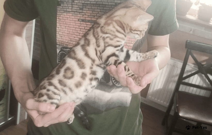 Предлагаем к продаже очаровательных чистокровных бенгальских котят. Отличные породные данные. Розетка на золоте. Розетка крупная. Дата рождения 20.11. Котята социализированы, к детям приучены, в лоток ходят с любым наполнителем. Кушают влажный корм, нежирное мясо, рыбу. Котята очень активные, ласковые Подарите себе маленького леоарда-шалуна. Он не даст вам скучать. В грустное настроение согреет своим мурчаньем, развеселит разными трюками. Продаются без документов, с ветпаспортом