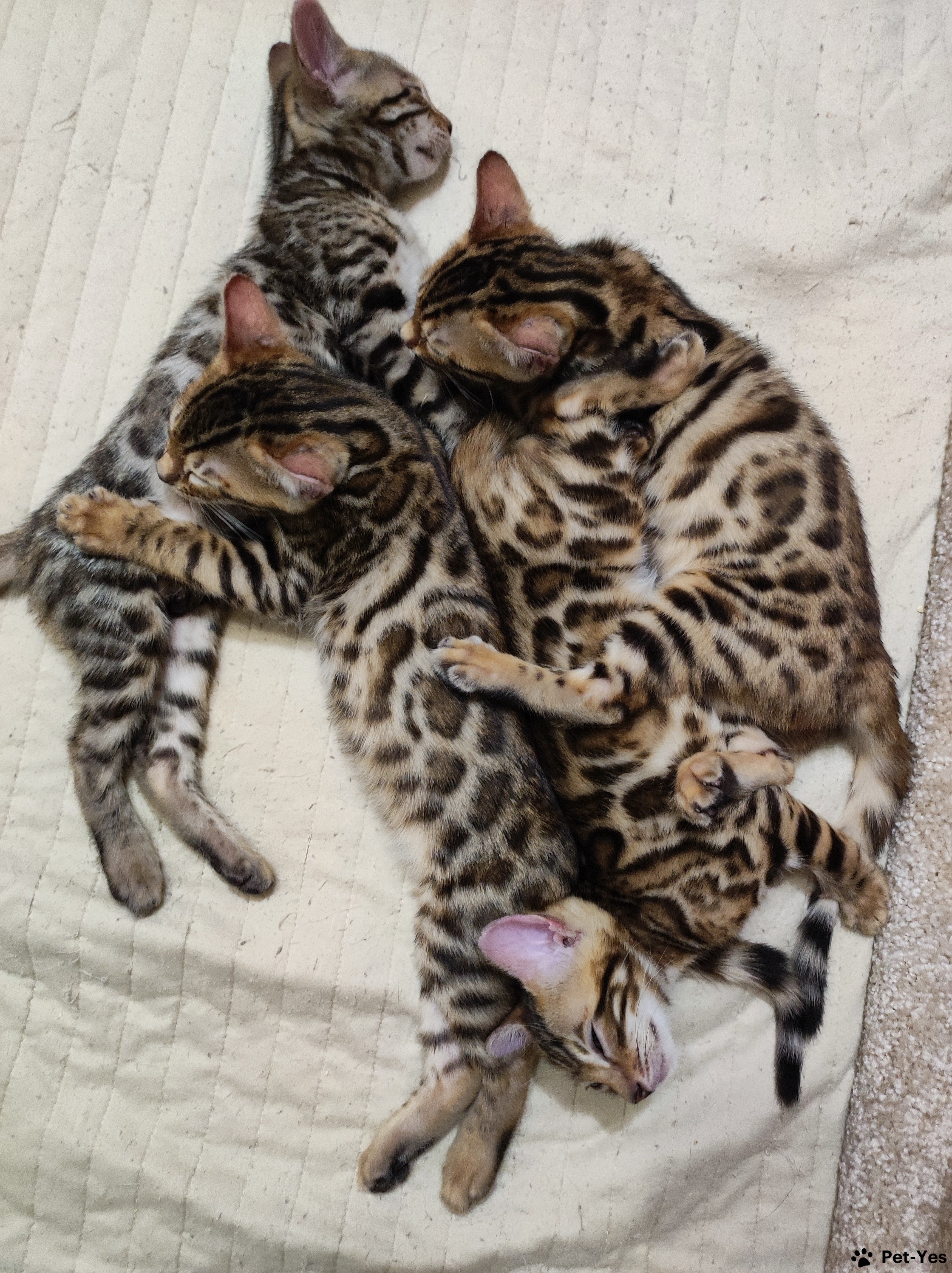 Предлагаются к продаже клубные чистокровные бенгальские котята Дата рождения 13.03.2023 Цвет розетка на золоте n24. Родители с отличной родословной, Мама имеет титул чемпиона. Котята Очень ласковые, игривые, приучены к лотку и когтеточке, ладят с другими животными. Питаются кормом премиум класса. На момент продажи будут иметь полную вакцинацию. Прилагается метрика клуба. Полностью здоровы, социализированы. Фото, видео и подробности в личных сообщениях. Круглосуточная помощь в уходе и воспитании . Помощь в доставке в другие города.