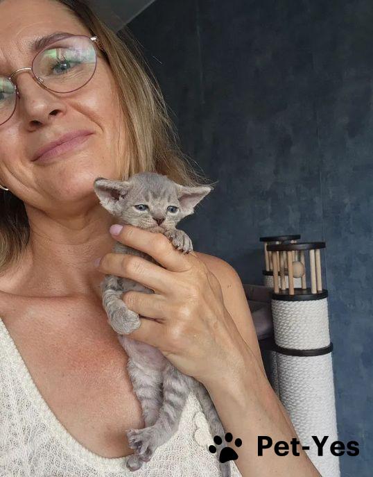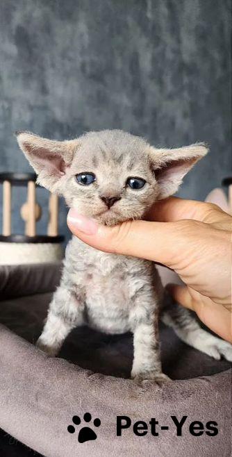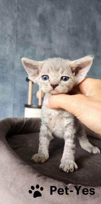 Девон рекс девочка ,родилась 4.07.2025окрас голубо кремовая черепаха табби Красотка в красивая ,кудрявая Открыта к резерву Питомник в Санкт-Петербурге цена указана в любимцы
