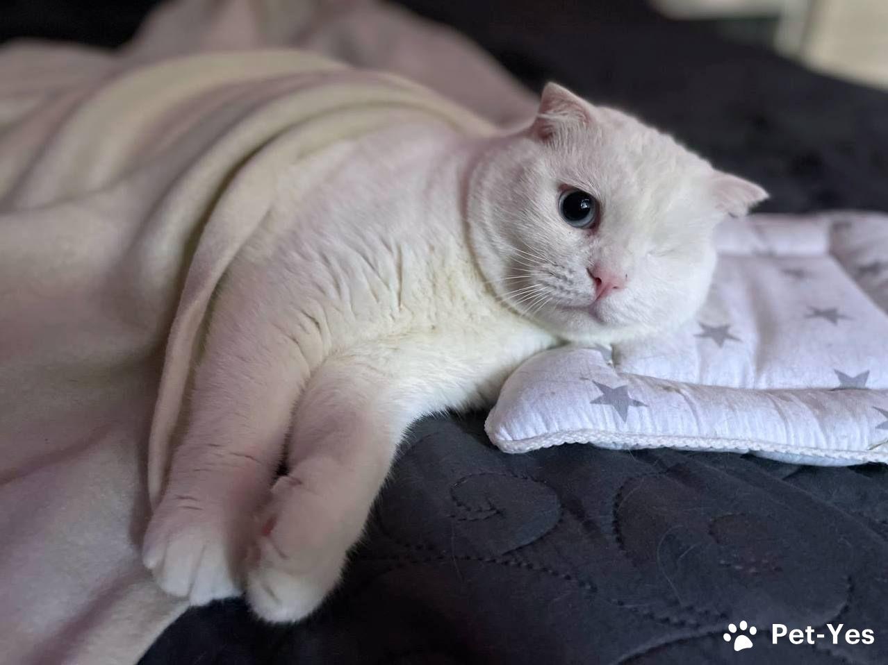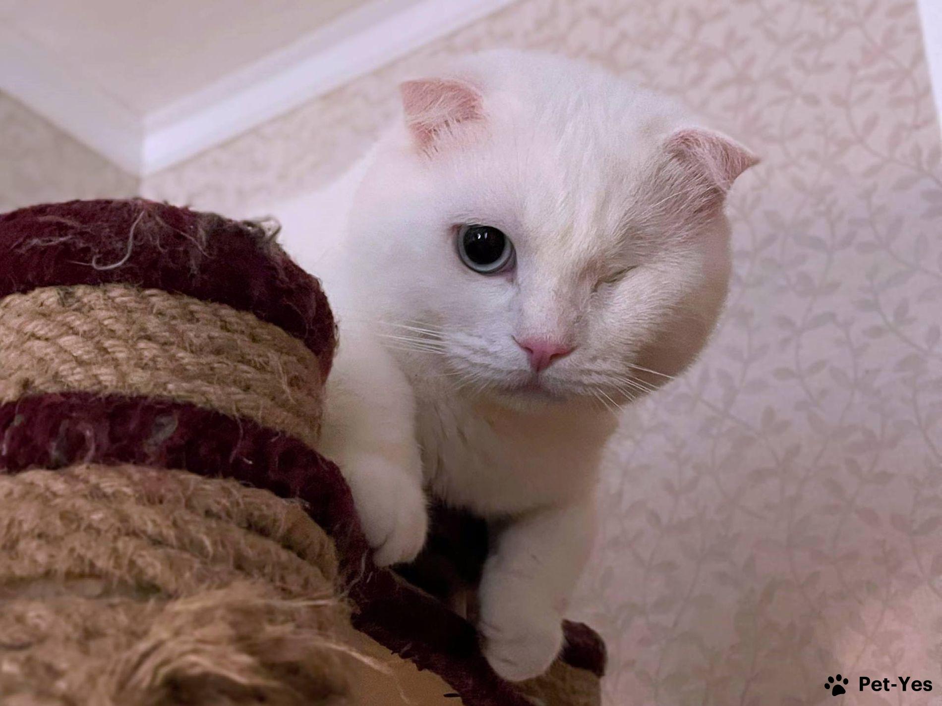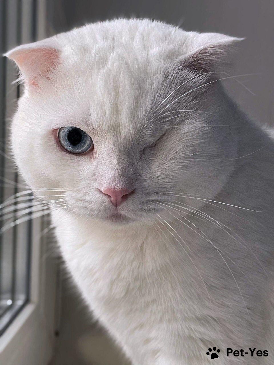 Ласковый шотландский кот Маугли. Порода: Шотландский вислоухий Белоснежный бархатный Маугли – милый добряк. Дружелюбный и забавный. Он родился разноглазым, но в детстве лишился левого глазика. К счастью, он об этом не помнит, наслаждается жизнью таким, какой он есть. Маугли — спокойный и ласковый котик. Больше лежебока, чем игрун. Любопытный исследователь. Любит ласку и любит спать в смешных позах — и на диване и в каждой удобной лежанке. Маугли 1,5 года (родился в 2024 г.). Здоров, кастрирован. Хорошо воспитан, привык жить в квартире. Чтобы стать его хозяевами, Вам нужно будет заполнить анкету и подготовить всё в доме, включая сетки «антикошка» (металлические, мелкие или крупные) на всех окнах в квартире или доме. Мы приглашаем познакомиться с ним, и, если всё хорошо, затем привозим в новый дом. Для поиска: кот в добрые руки кот в дар отдам кота вислоухий шотландец скоттиш фолд голубоглазый белый кот снежок ласковый пушистый возьму кота питомец cat кот в дом 89067768080 Анастасия
