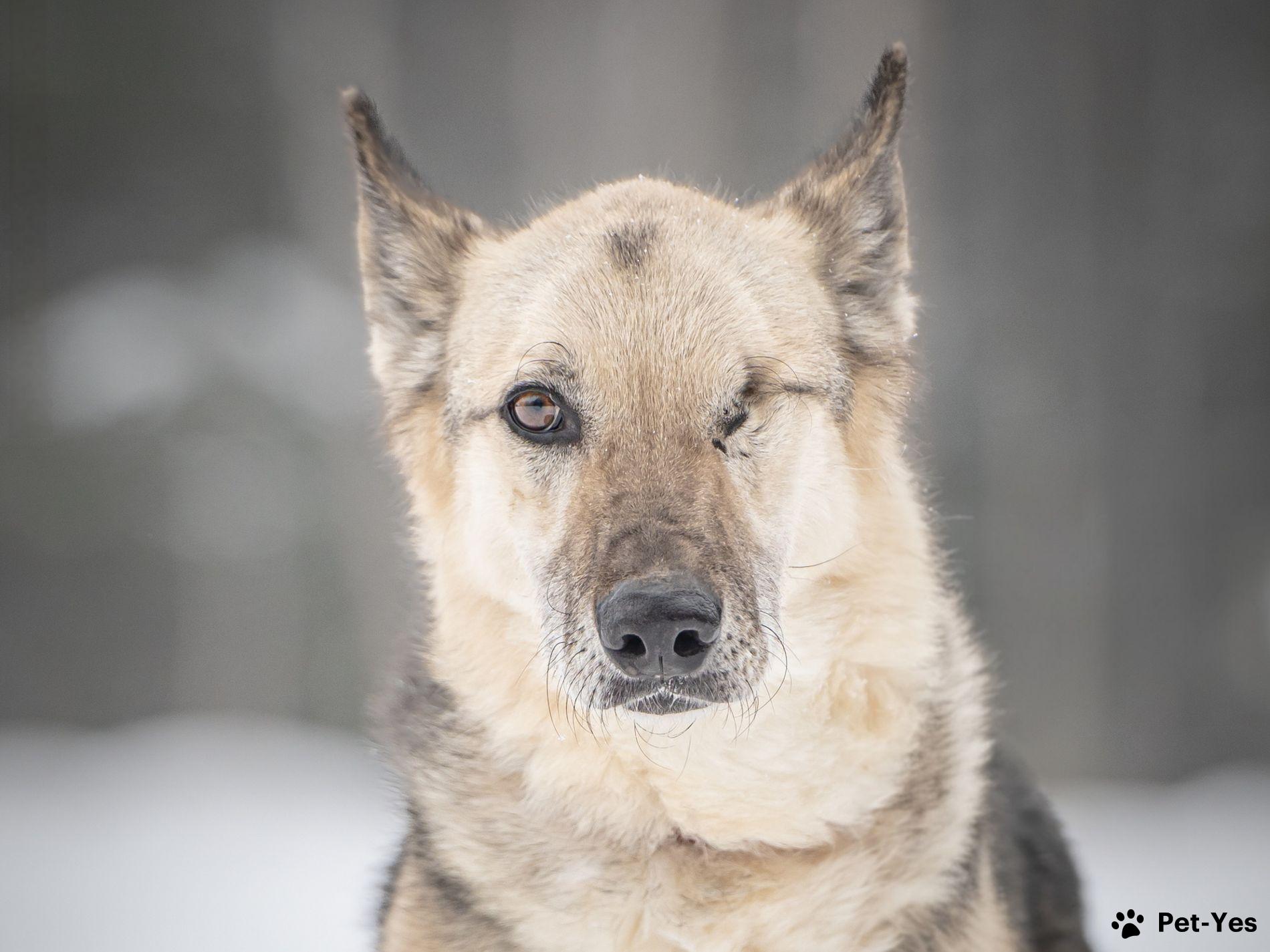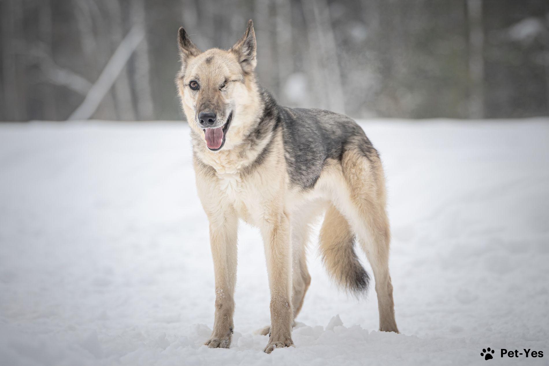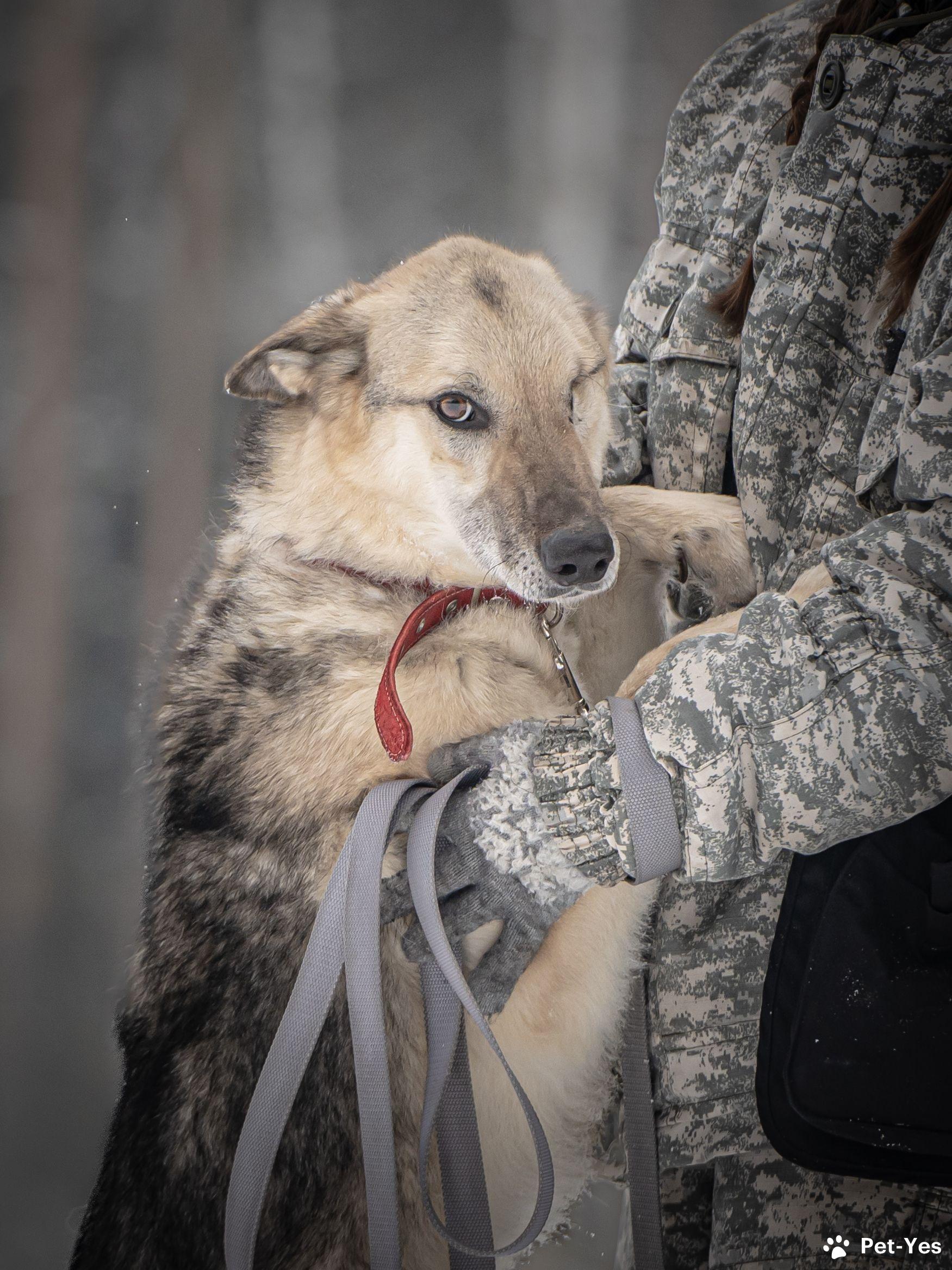 Грей — статный пёс с нордическим характером! • Рождён в мае 2019 года. • Привит, кастрирован, есть чип. • Среднего размера, ~ 55 см в холке. • Может жить в доме, в квартире, а также в вольере с тёплой будкой, но не на цепи. Это добрый, спокойный и послушный пёс с настоящим нордическим характером — сдержанный, достойный и преданный. Грей — образцовый компаньон: он хорошо гуляет на поводке, дружелюбен к людям. Несмотря на всю серьёзность, когда этот красавец из вольера замечает знакомых волонтёров, начинает радостно и высоко прыгать, отталкиваясь от стены! В такие моменты становится ясно, как сильно он ценит внимание и мечтает о своей семье. Особая черта Грея — его уникальный взгляд. Со щенячества у него была проблема с глазом (бельмо), несмотря на пройденное лечение, сохранить глаз не удалось. Это ни капли не мешает ему быть отличным другом и видеть сердцем тех, кто готов его полюбить. Для обеспечения счастливого будущего Грея его передача осуществляется после знакомства и подписания договора. Мы всегда на связи и с заботой отслеживаем судьбы выпускников приюта.