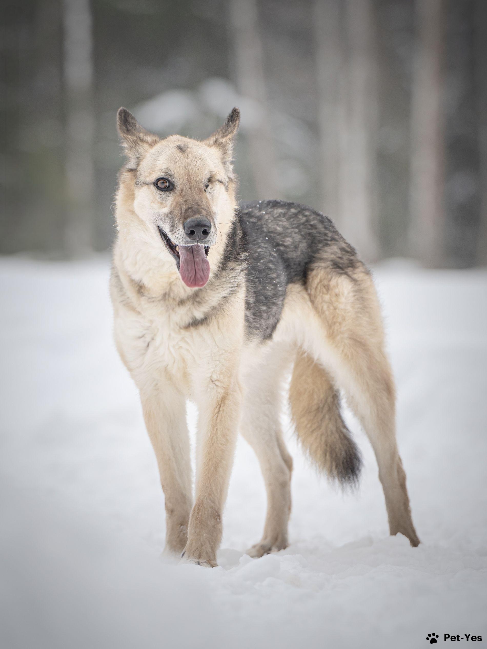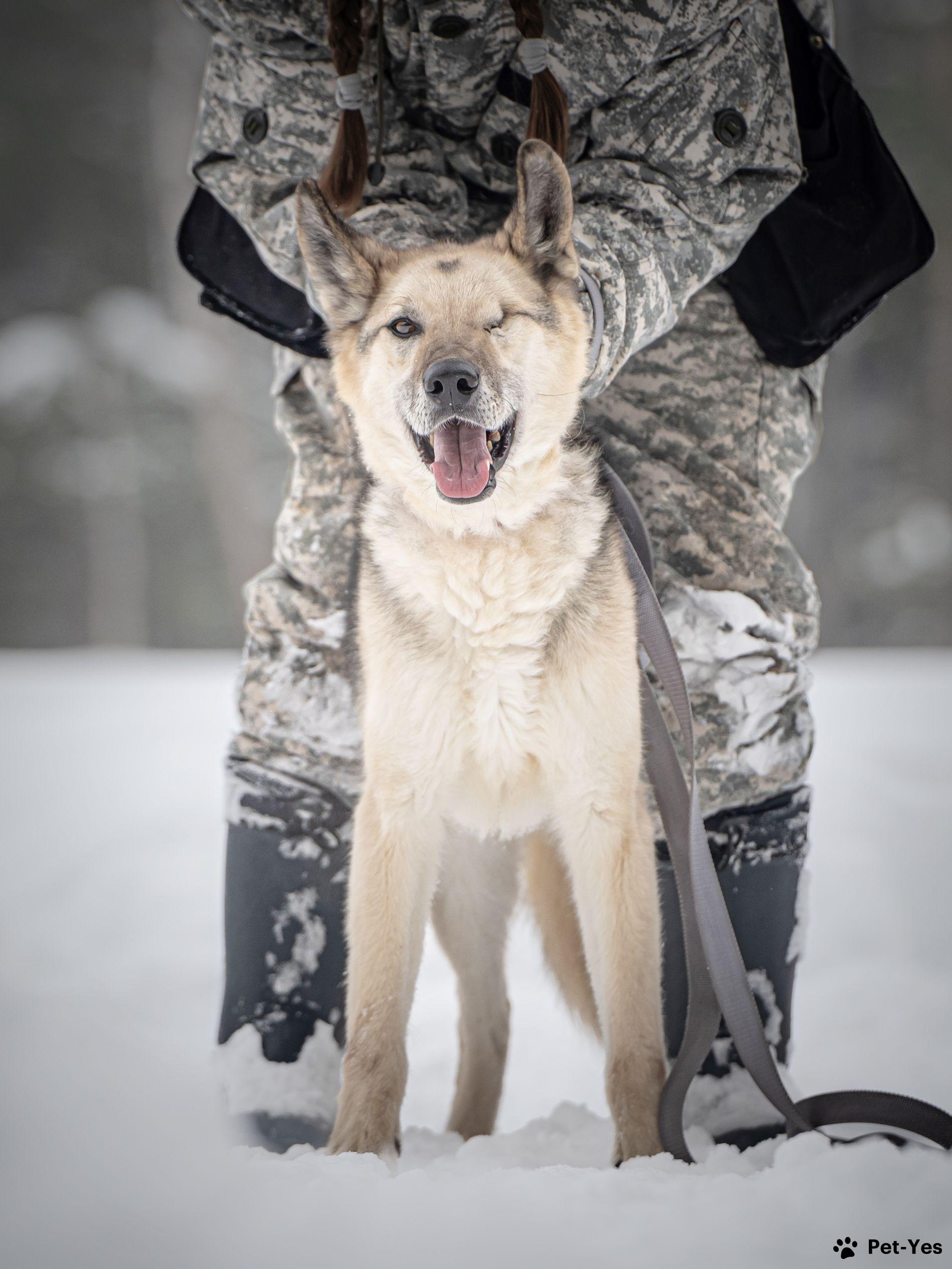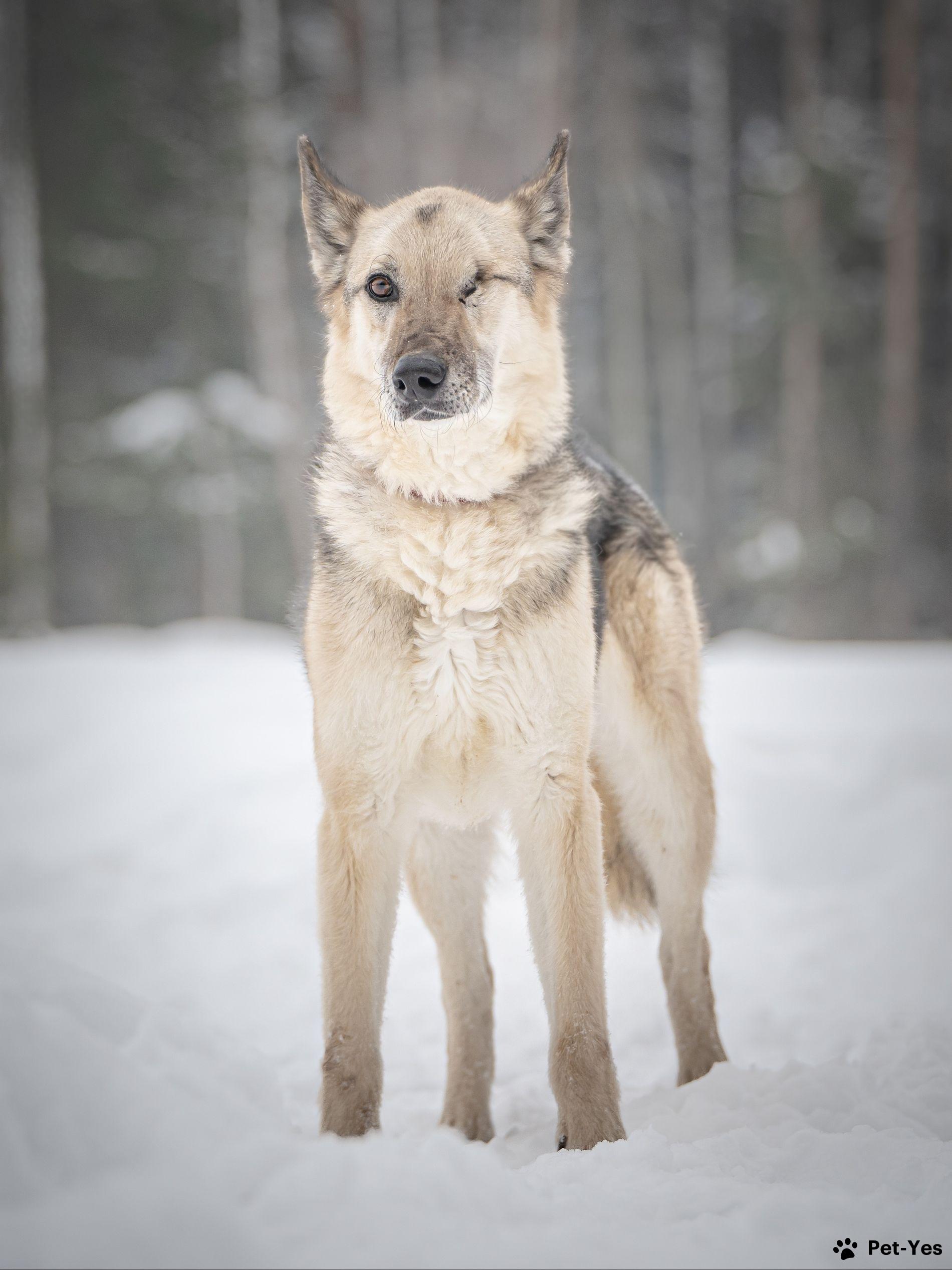 Грей — статный пёс с нордическим характером! • Рождён в мае 2019 года. • Привит, кастрирован, есть чип. • Среднего размера, ~ 55 см в холке. • Может жить в доме, в квартире, а также в вольере с тёплой будкой, но не на цепи. Это добрый, спокойный и послушный пёс с настоящим нордическим характером — сдержанный, достойный и преданный. Грей — образцовый компаньон: он хорошо гуляет на поводке, дружелюбен к людям. Несмотря на всю серьёзность, когда этот красавец из вольера замечает знакомых волонтёров, начинает радостно и высоко прыгать, отталкиваясь от стены! В такие моменты становится ясно, как сильно он ценит внимание и мечтает о своей семье. Особая черта Грея — его уникальный взгляд. Со щенячества у него была проблема с глазом (бельмо), несмотря на пройденное лечение, сохранить глаз не удалось. Это ни капли не мешает ему быть отличным другом и видеть сердцем тех, кто готов его полюбить. Для обеспечения счастливого будущего Грея его передача осуществляется после знакомства и подписания договора. Мы всегда на связи и с заботой отслеживаем судьбы выпускников приюта.