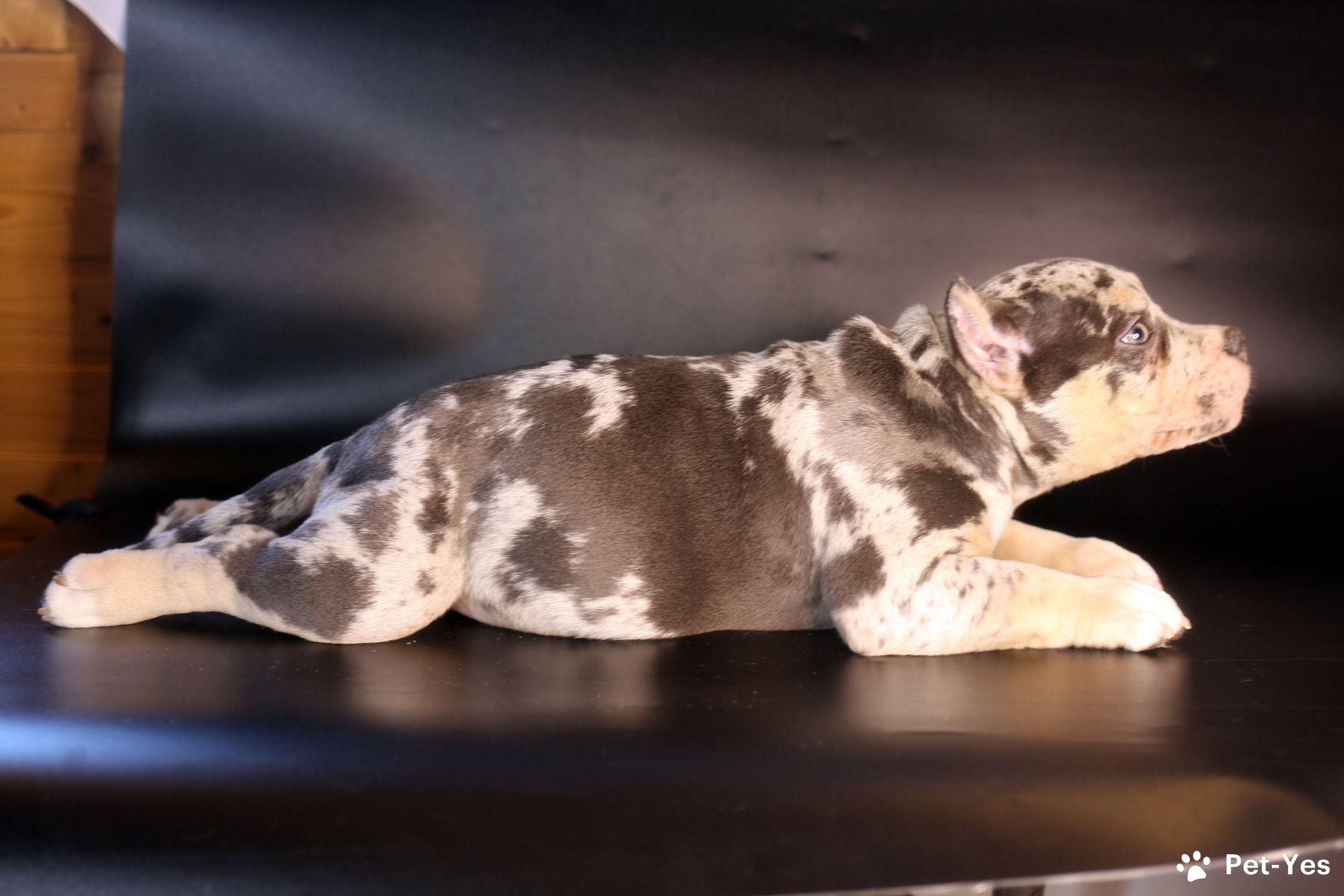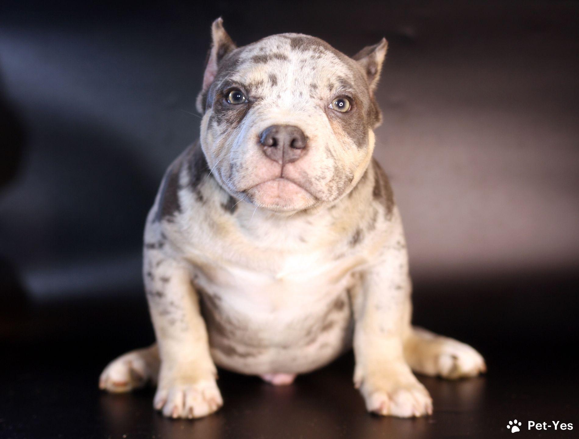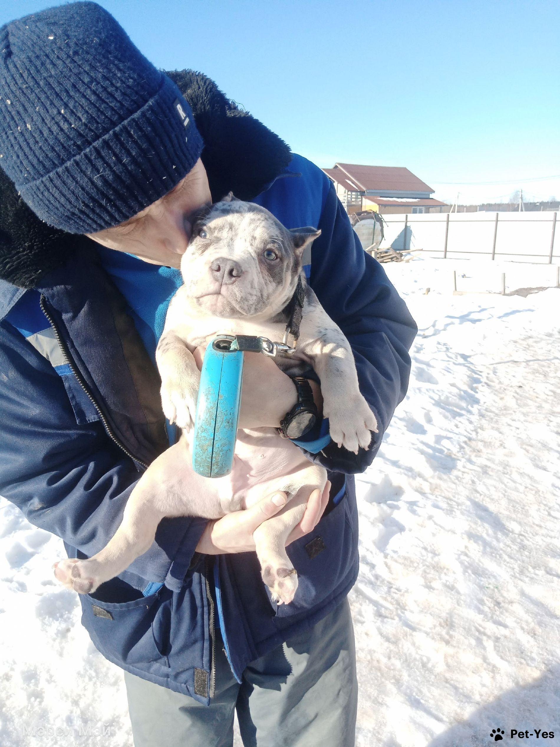 Американский булли для предварительного бронирования ММ ДЕМАР РОККО Кобель 4 голубой триколор мерле Небольшой, широкий, мордатый, полный хвост, ласковый и общительный мальчишка. Вакцинация по возрасту, будут купированы ушки. 89052154280