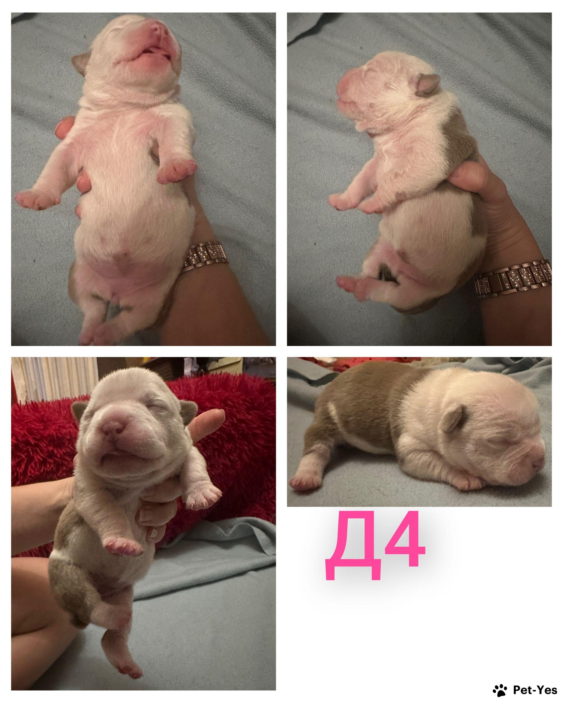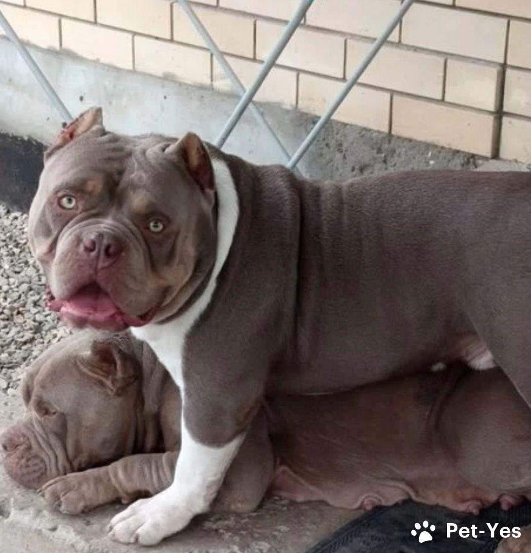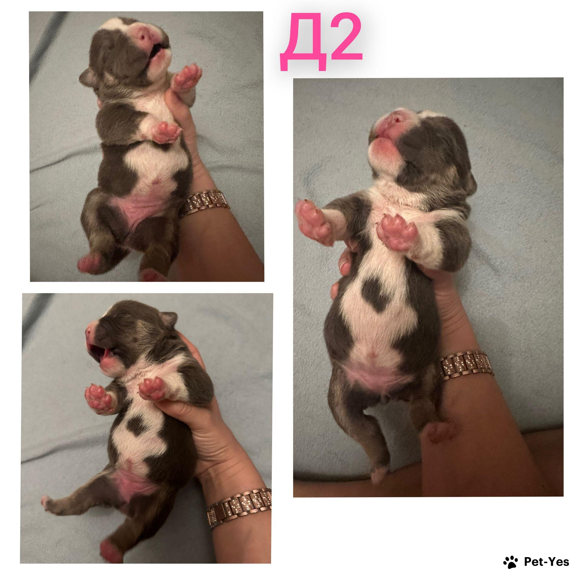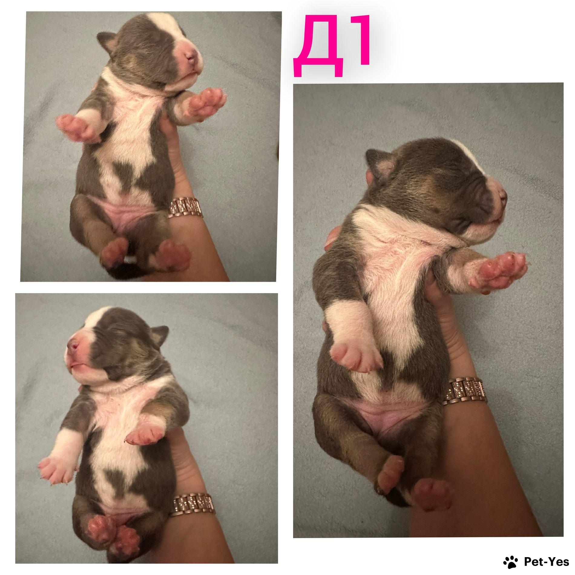 Предлагаются к раннему бронированию щенки Американский булли в типе покет. 5 сук и 2 кобеля. Окрасы голубой трик/ лиловый трик. Родители без агрессии живут в семьях с детьми и другими животными, прикус ножницы. 100% покет. Мать 35см 20кг Отец см38 и около 30кг На момент переезда у щенков будут купированы ушки, паспорт, метрика АБКС. На последних фото щенок с предыдущего помета от вязки с экзотом. Доставка возможна в любую точку мира проверенной компанией по перевозке животных.