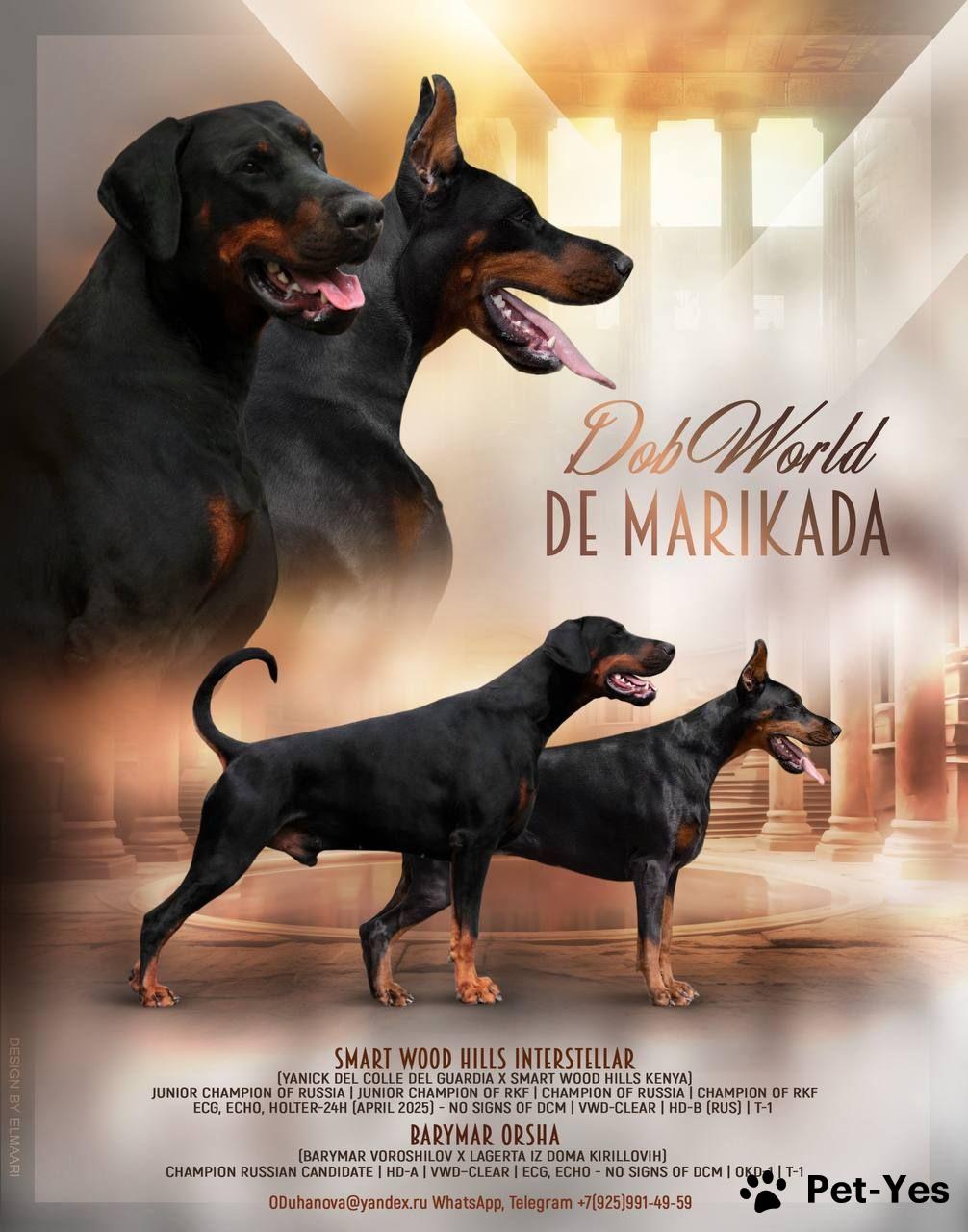 Предлагаем потрясающих купированных щенков европейского типа. Мощные, крепкие. Гуляют на поводках, социализируются за пределами своего участка. Великолепная родословная с европейскими кровями. Загородное выращивание. Питомник (РКФ) на связи 24/7 Родители проверены по здоровью. Находимся в Московской области. Доставка возможна специализированной фирмой-перевозчиком. Пишите, спрашивайте. Родители: Отец: Smart Wood Hills INTERSTELLAR (Yanick del Colle Del Guardia x Smart Wood Hills Kenya) Junior Champion of Russia Junior Champion of RKF Champion of Russia Champion of RKF ECG, ECHO, Holter-24h (April 2025) - no signs of DCM vWD-clear HD-B (Rus) T-1 Мать:Barymar Orsha (Barymar Voroshilov х Lagerta iz Doma Kirillovih) Champion Russian Candidate HD-A vWd – clear ECG, ECHO - no signs of DCM OKD-1, Т-1