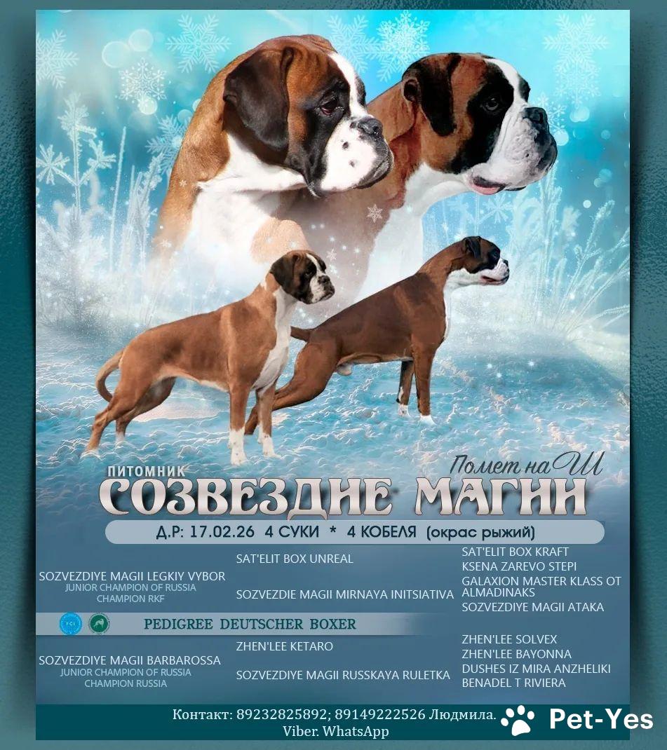 Предлагаем к бронированию щенков немецкого боксëра от титулованных родителей. По характеру активные, смелые, очень ласковые🥰 Вместе со щенком вы получите море любви и верного друга на долгие годы❤ К моменту переезда будут иметь клеймо, ветпаспорт и прививки по возрасту. Документы РКФ. Помощь и сопровождение от питомника. Малыши находится в Иркутске. Пишите и отправим Вам фото и видео щенков) Помощь при доставке по России. Родились 17.02.2026. Цена договорная.
